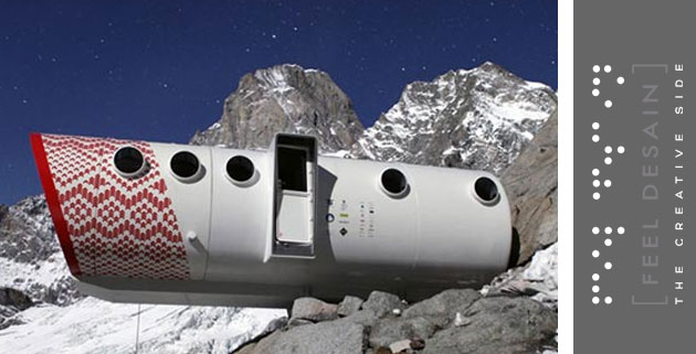 This, the first alpine refuge of the latest generation, it provides the optimal combination of comfort, safety and respect for the environment. It was installed in mid October 2011 in Courmayeur (IT) on the Freboudze glacier, in front of the spectacular East face of the Grandes Jorasses of the Mont Blanc Range. It is now ready for use by mountaineers and climbers.