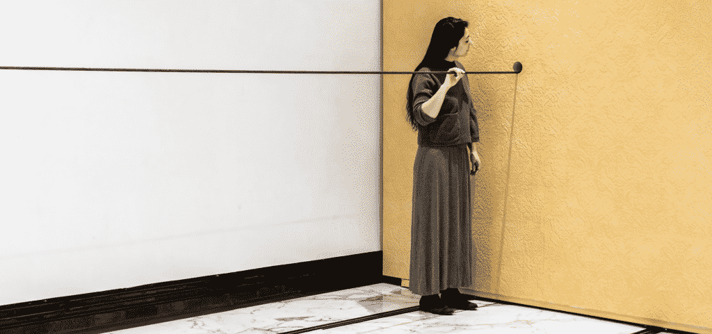 Using a palette of beeswax, military parachutes, and marble laminate, Clark abstracts domestic space and puts it in tension. In this kinetic sculpture, she forces two walls along a track in a slow, mechanized, repetitive collision. The artist invites us to engage with our bodies.