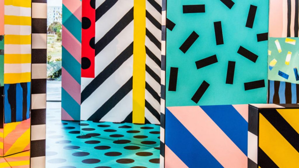 The artist/designer Camille Walala has created for the Now Gallery an eye-popping interactive installation, Walala X Play, that’s complete with her signature graphic patterns, geometric shapes, and bold colors. This space welcomes visitors to explore, examine and enjoy a labyrinthine network of corridors and enclosed spaces in a ‘temple of wonder’.