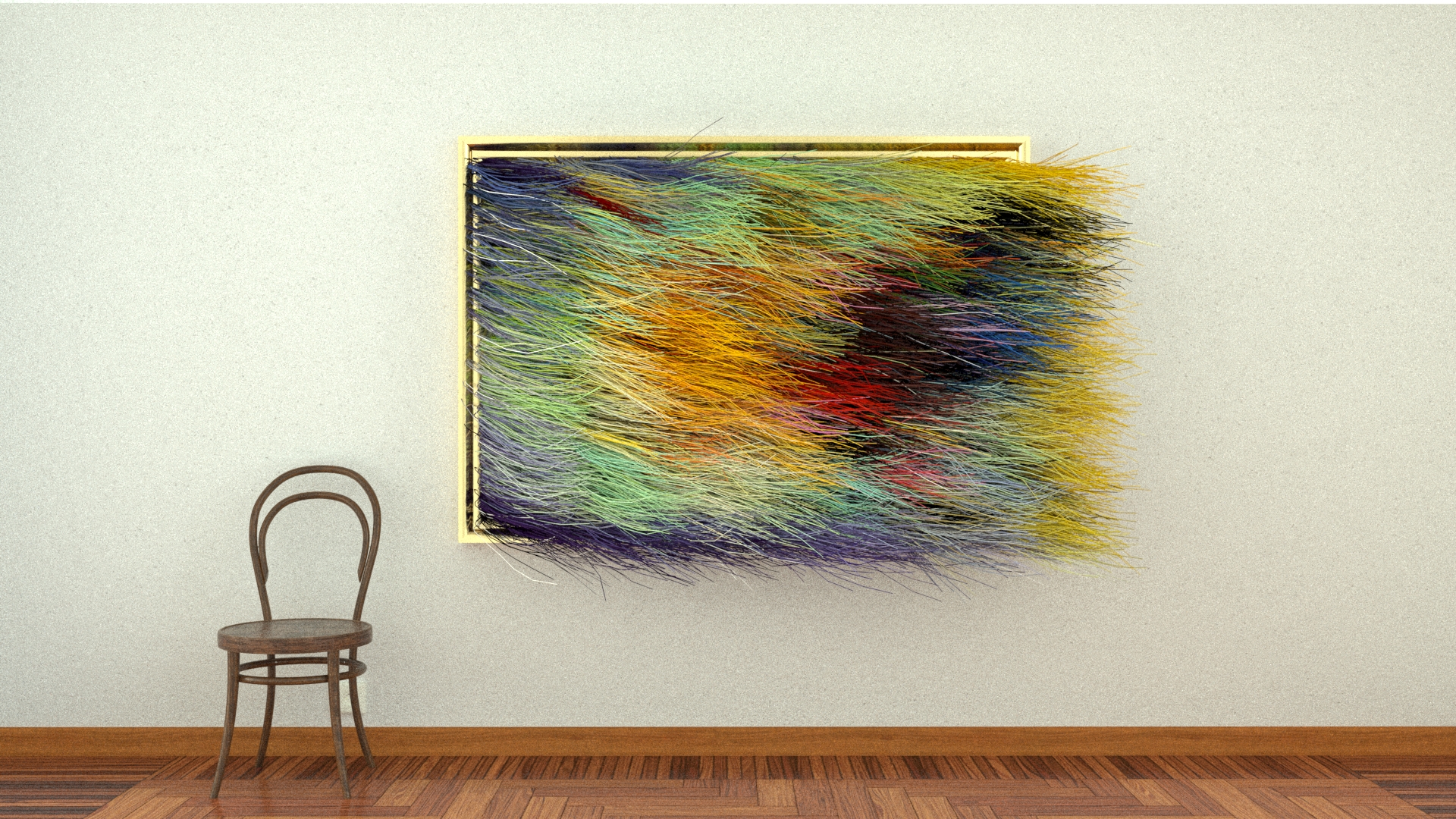 These paintings, emblems of art’s history, are now enhanced through movement, expressed with polygons transformed into colored fibers and subject to random physics.