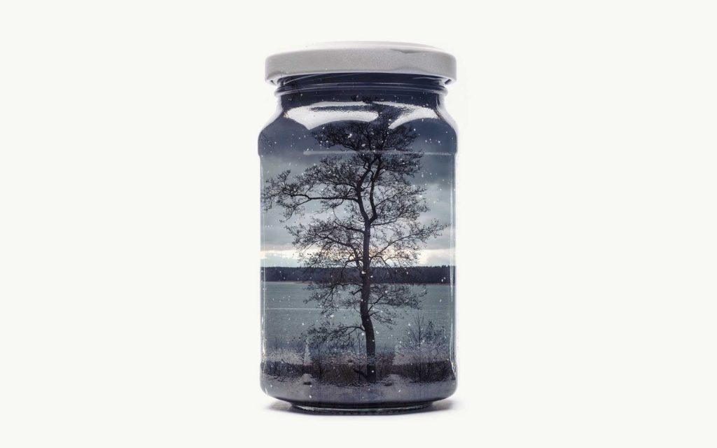 Now, for three years Relander has been revisiting his childhood environments to “capture” them into his collection. Most environments are from where he grew up, in the countryside in the south of Finland, where his roots still lie. As a container for the environments, Relander chose to use jar bottles produced by the food industry.