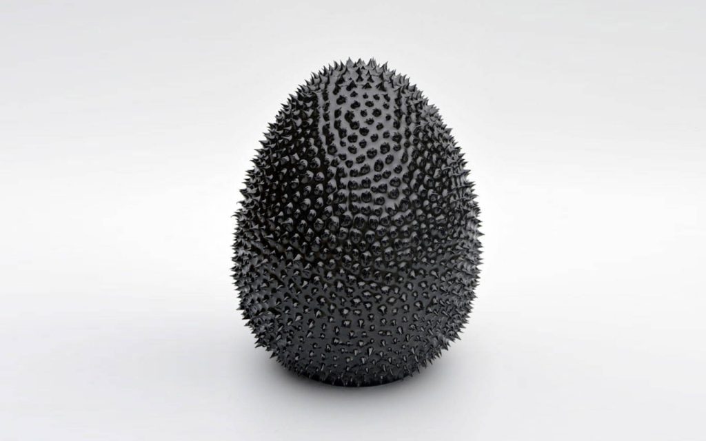 Previously working with the female figure in her sculptural pieces, Juliette Clovis’ newest series of porcelain sculptures is centered around the form of an egg. Each was crafted by Clovis in La Manufacture La Seynie, the oldest Limoges porcelain manufacturer in France. Some of her eggs, which are decorated in a similar fashion to many of her earlier pieces with spikes, floral clusters, and hand-painted markings, are currently on view at Galerie Mondapart in France through May 4, 2017.
