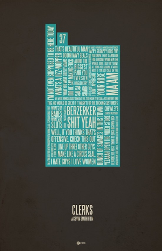 Una interessante serie di posters dell’artista Jerod Gibson che composti con le migliori frasi, citazioni e dialoghi dei film e delle serie tv rappresentate.