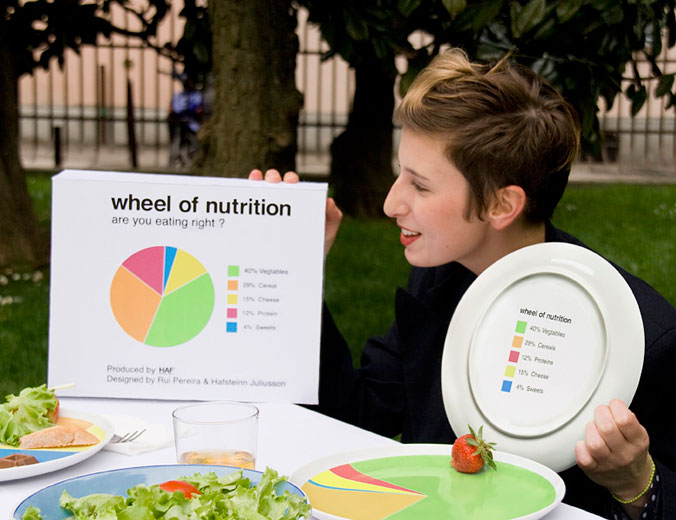 Ti nutri correttamente? Questa è la domanda di partenza che ha spinto il product designer Rui Pereira a realizzare Wheel of Nutrition. Un divertente e utile set di piatti, che grazie a un grafico a torta stampato, permette a chi si appresta a mangiare di cogliere a colpo d’occhio la quantità e la tipologia corretta di cibo. Il set realizzato in collaborazione con Hafsteinn Juliusson e Joana Pais è disponibile in tre varianti: Diet, Extra ordinary e Supersize.
