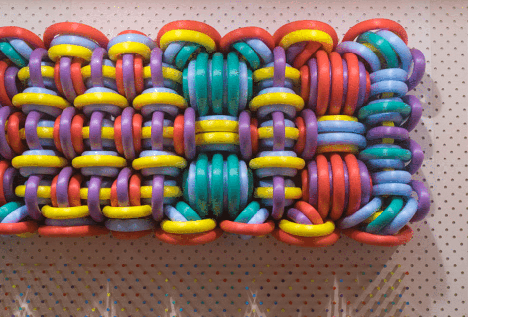 Dutch design studio We Make Carpets doesn’t make carpets, or at least not the ones you’re thinking about. Laying their creations on the floor, the trio—who works with everyday materials like plastic forks, kitchen sponges, matches and balloons—is now taking the carpets to the walls of melbourne’s NGV kids gallery for the ‘hands on’ exhibition.