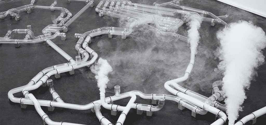 Arranging smoke and glass tubes in the same order internet cables, Dutch multimedia artist Jeroen Van Loon asks us to consider how the internet may look if all data was temporary and ephemeral.