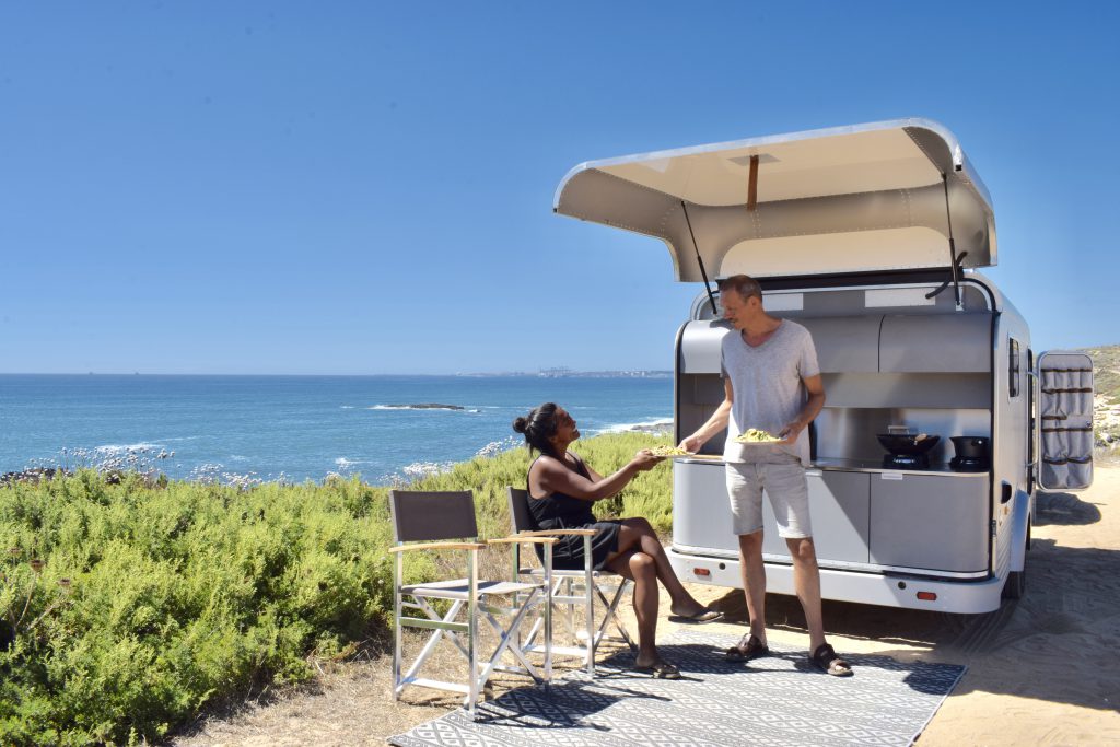 No.1 is the original model designed by Hein van de Laar, founder of the company, that guarantees great and comfort travels. The outdoor kitchen is fit with a full-fledged stove, PITT Cooking gas burners, a 40-liter fridge and stainless-steel countertops. three upper cabinets offer space for storing tableware and glassware, while two large lower cabinets provide extra storage space.