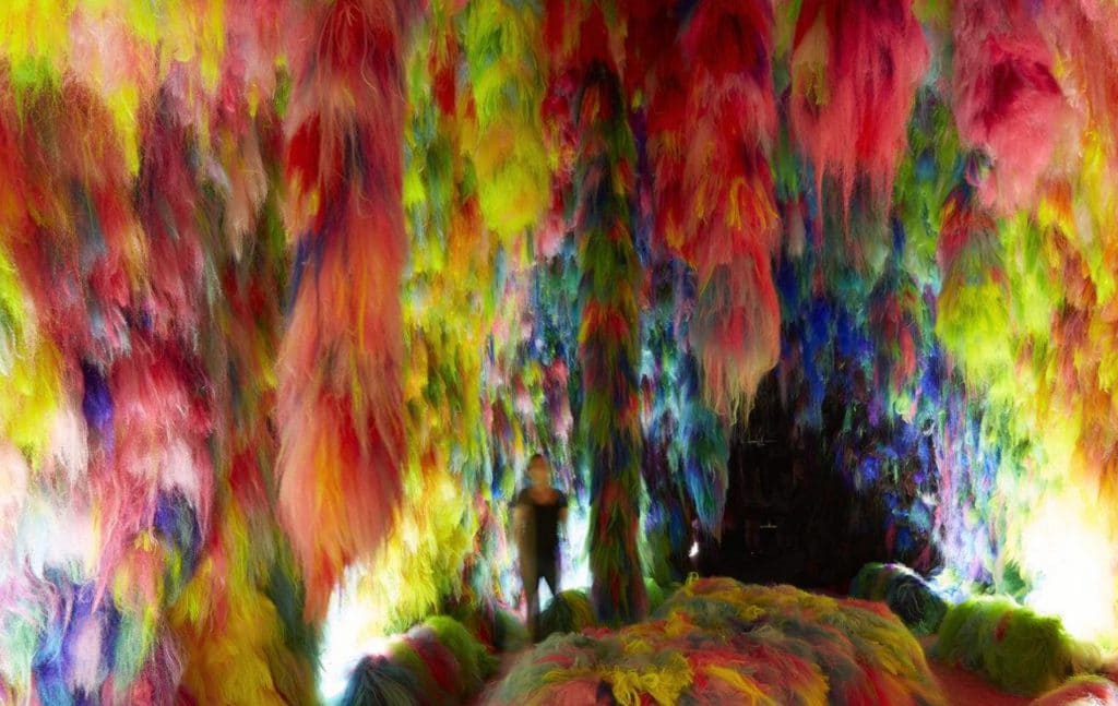 This exhibition combines color, sound, and textures that immerse visitors in an audiovisual experience. Artist Hrafnhildur Arnardóttir / Shoplifter has created a series of distinct chambers, starting from primal opus, a dark passage of emanating volcanic earthy hues, activated by the sub terra sound of the icelandic cult metal band HAM.