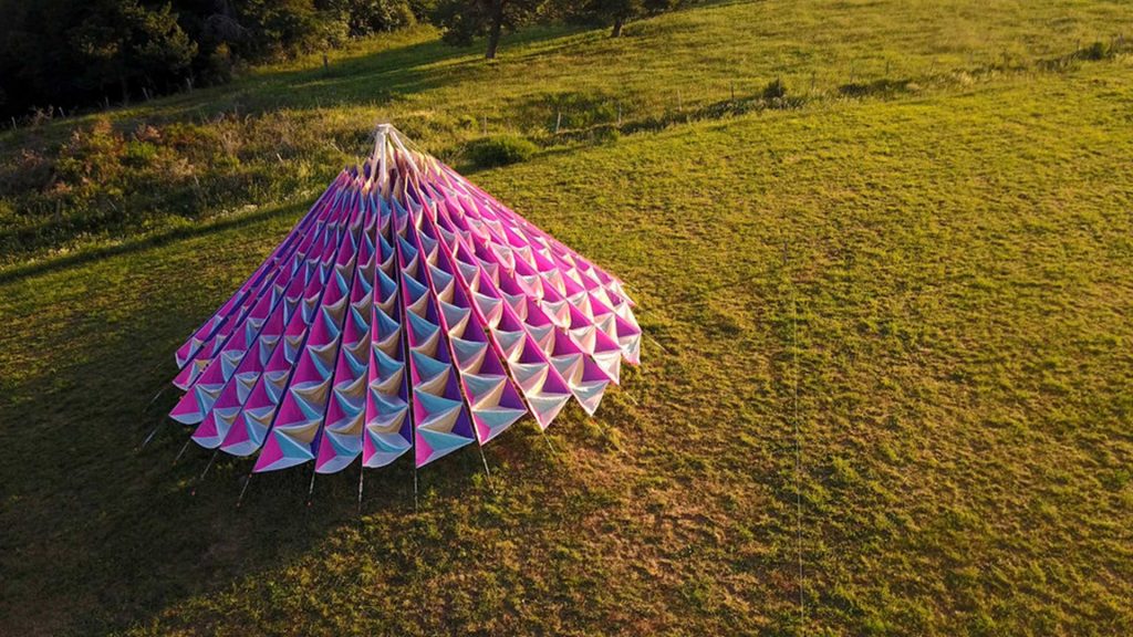 The Wind Cathedral is located at the village of Victor-Saint-la Riviere in the Sancy Massif in France and was constructed in June 2017 as part of the environmental art exhibition “Horizons”. The specific site is called the Croix de la Perdue – the Cross of the Lost Woman – due to the presence of a cross in memory of a woman perished during a storm.